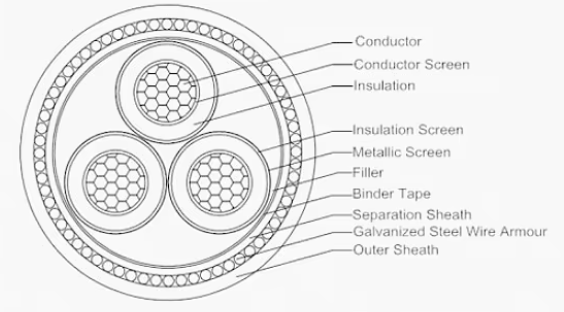 Medium Voltage Low Smoke Zero Halogen Cable LSZH 19/33 (36)kV CU/XLPE/SWA/ LSZH EN60228 Images |